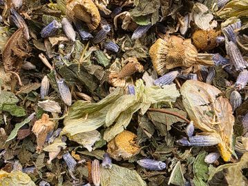 A gentle calming blend of lemon balm, chamomile, lavender and hops to support sleep. Locally blended using locally grown and organically sourced herbs.